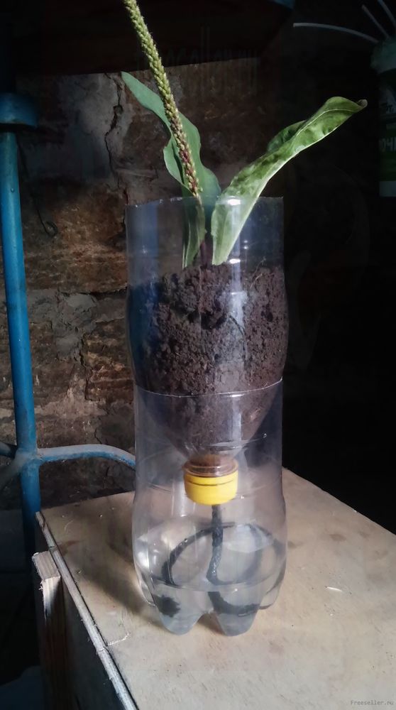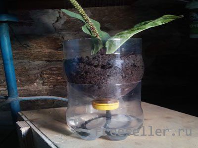 Теперь можно не переживать, что мы забудем полить растение, ведь оно будет постоянно подпитываться. Главное теперь не забывать наливать в нижнюю часть приспособления воду :)