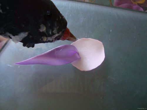 Вырезаем небольшой круг для основы и начинаем приклеивать на него лепестки.