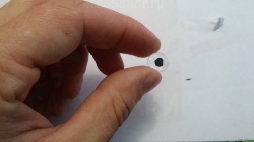 Вот и все, глазик готов! Аналогично изготавливаем второй и крепим так же при помощи термоклея на их законное место!