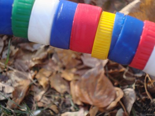 Теперь на металлическую тонкую дугу (проволоку, конечно, должен мужчина согнуть) плотно насаживаем крышки.