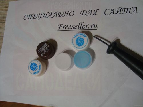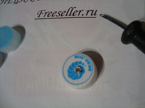 Затем в середине пробки проделываем дырку побольше, поэтому шило должно как бы расплавлять крышку, а не просто проколоть. Удобнее под крышки подкладывать полотенце, сложенное в несколько слоев. Иначе вы рискуете испортить стол.
