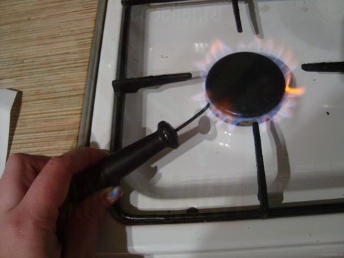Сначала сильно нагреваем шило (у нас уже острый край отвалился от постоянной смены температуры)