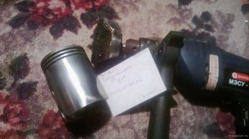 Для того чтобы оттереть нагар и мазут от поршня я использовал насадку на дрель.