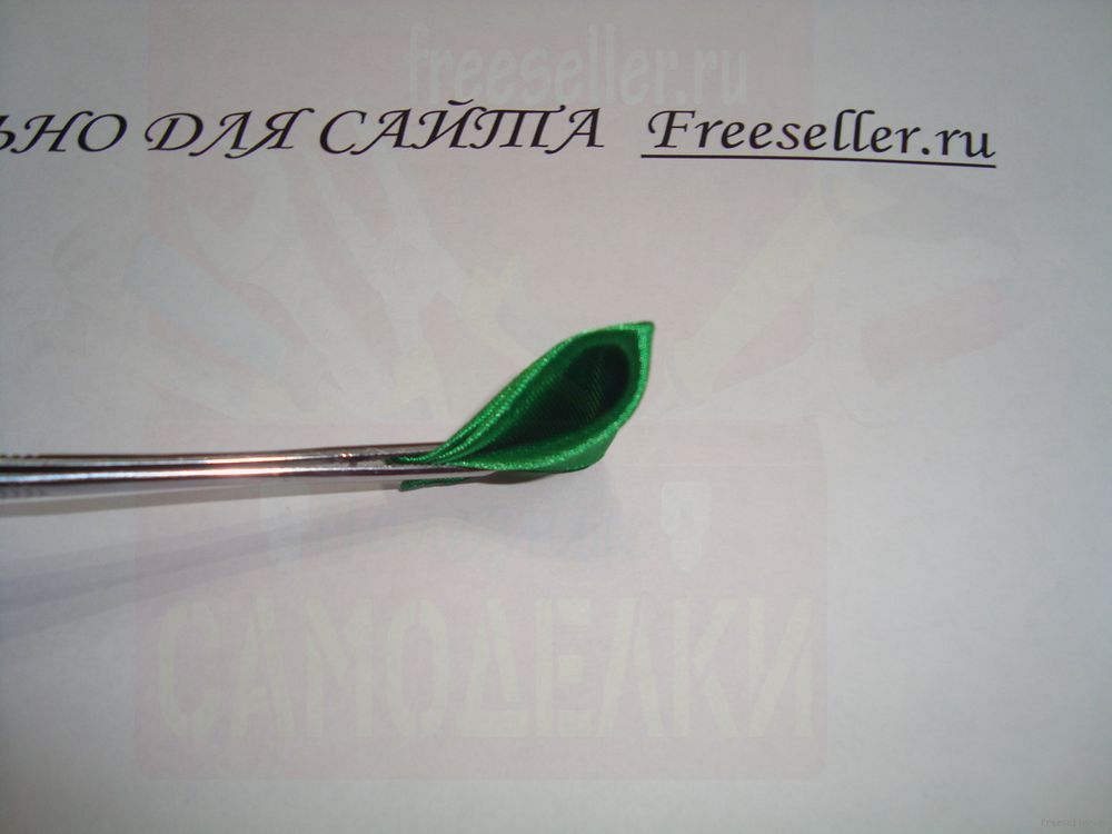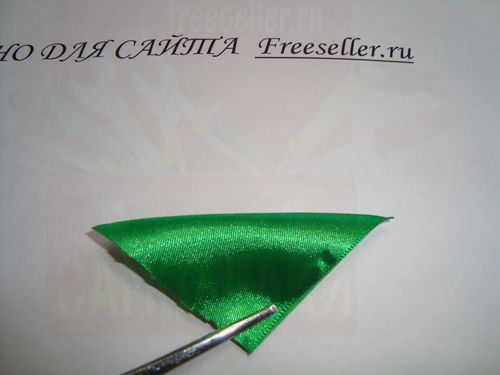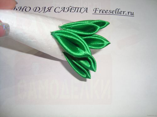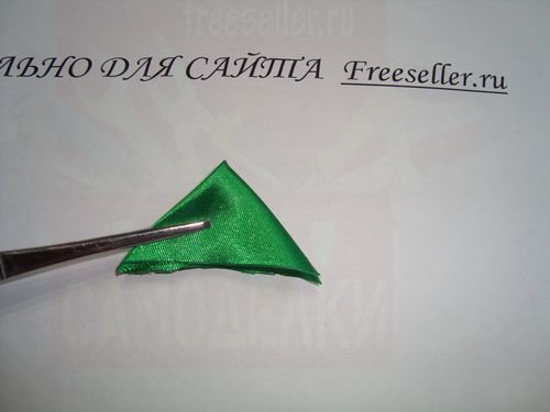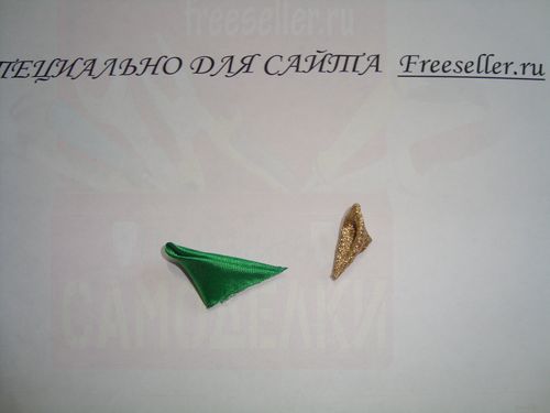 На следующем этапе зеленые заготовки нужно перегнуть ровно в центре. Следите за тем, чтобы образовался красивый ровный острый угол.