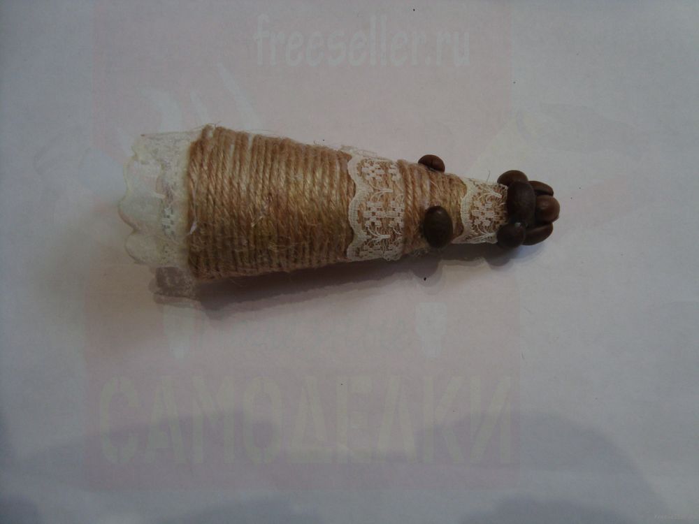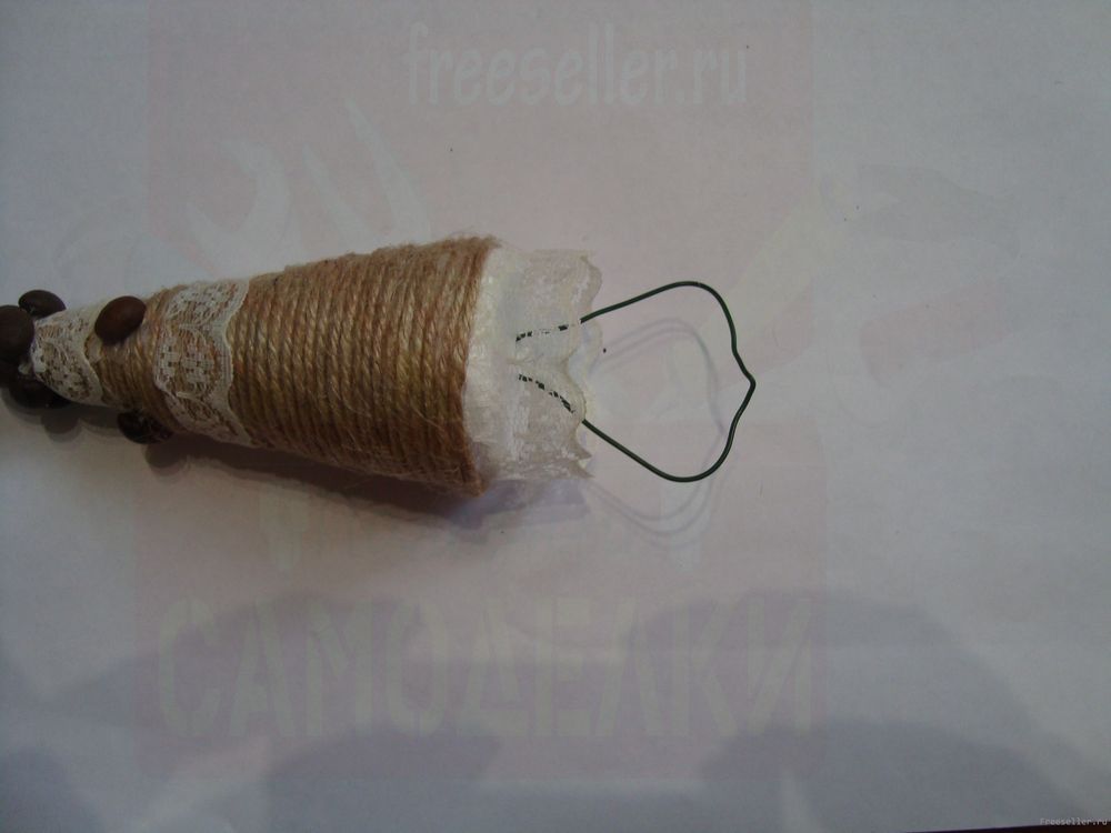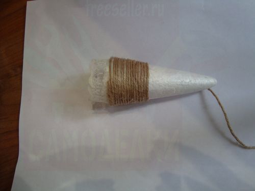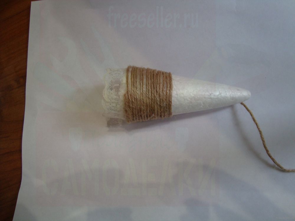 Далее шпагат наматывайте вокруг конуса, начиная снизу.