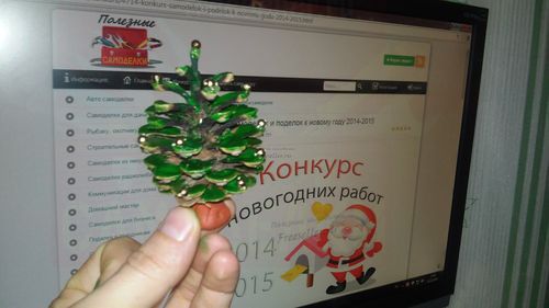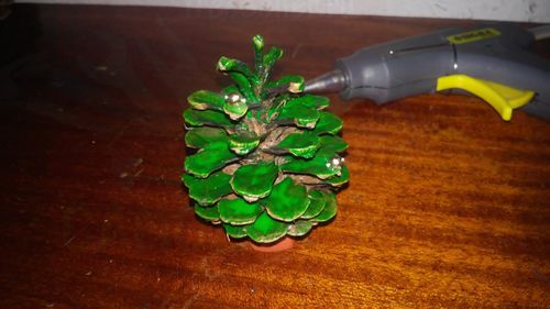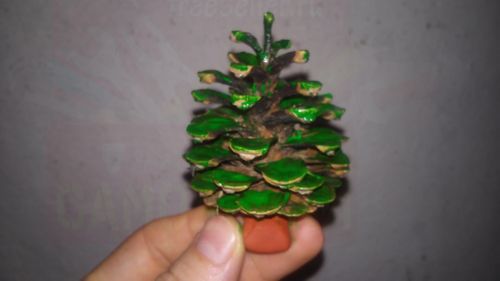 Для украшения своего рабочего стола, и что бы приподнять предновогоднее настроение, можно изготовить мини-елочку из обыкновенной шишки. Такая поделка будет смотреться очень оригинально! А сделать ее можно вместе с ребенком. Будет очень занимательно.