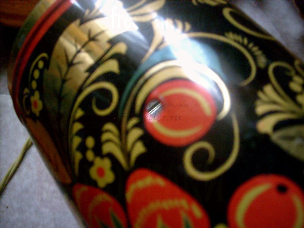 6. Вкручиваем лампочку. Включаем пробки. Наш "хохломской" светильник готов.