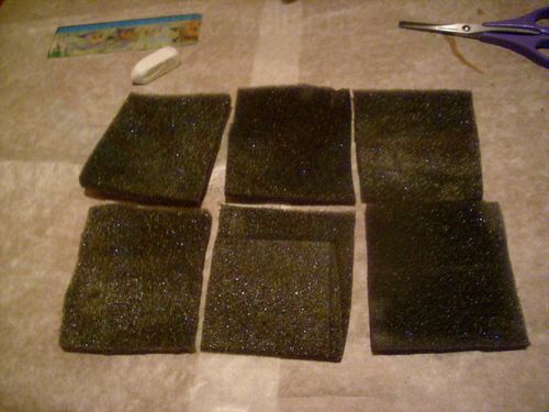 3. На лоскуте тонкого поролона вычерчиваем 6 квадратов размером 8 на 8 см.