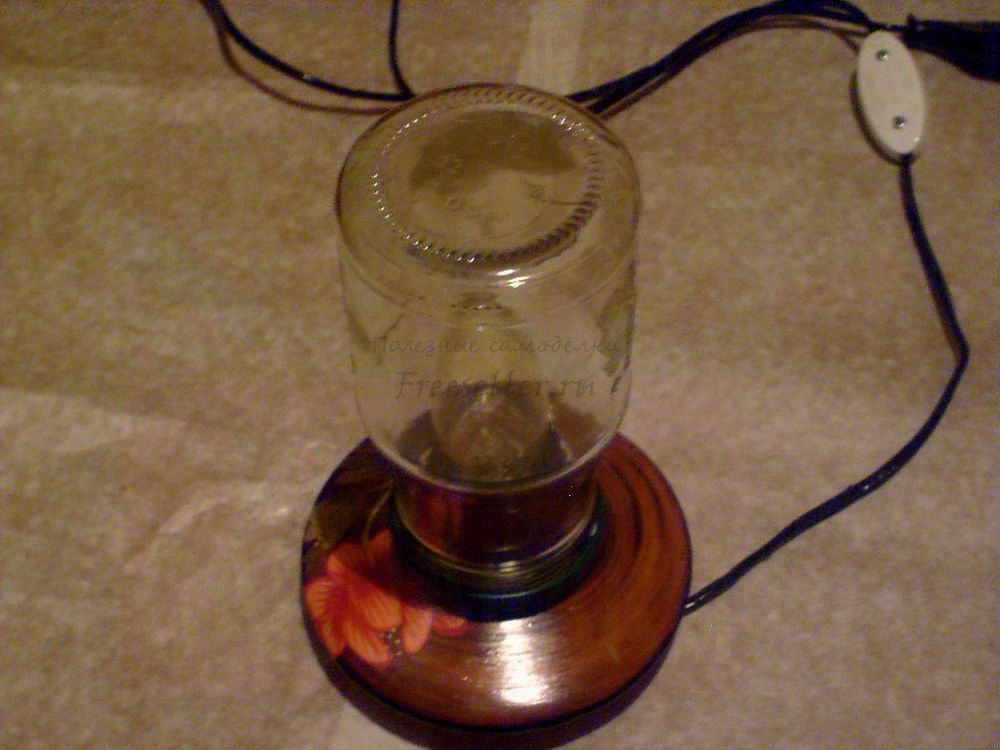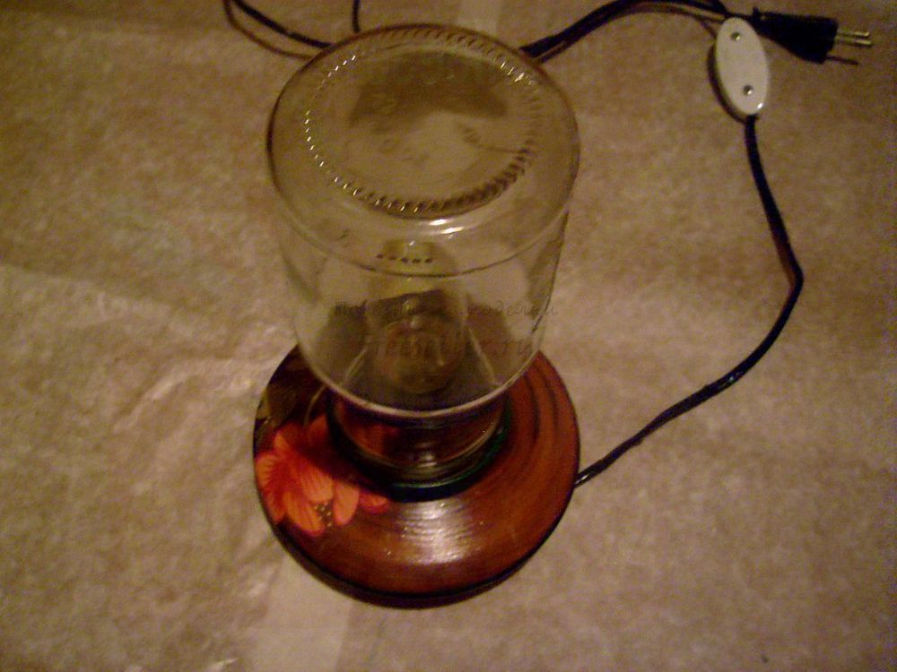 3. Дальше всё просто. Вкрутили лампочку. Вопреки природе баночно-крышечных отношений, ввинтили бутылку в крышку.