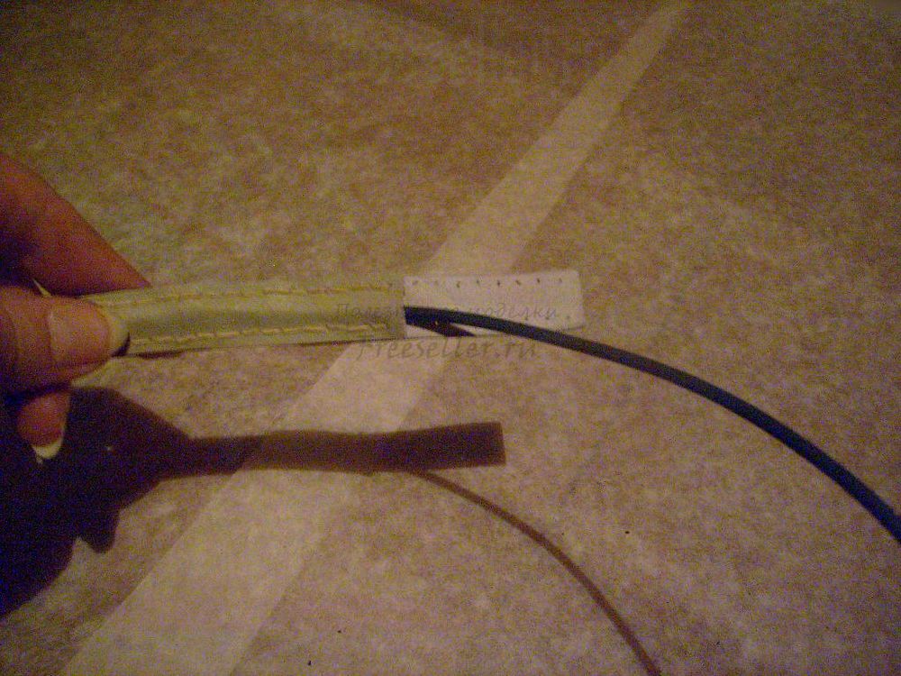3. Пропускаем пластиковый шнур сквозь готовую оболочку дужки. Он легко сгибается и при этом держит заданную форму. Очень удобен в таких случаях.