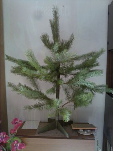 После того, как стволик будущей ёлочки будет установлен на основание, в отверстия вставляются веточки из «букета». В нижний ярус монтируются веточки подлиннее в средний немного покороче и в верхний самые короткие. В верхний торец вставляется верхушка. При монтаже необходимо стремиться к тому, чтобы веточки плотно входили в отверстия.
