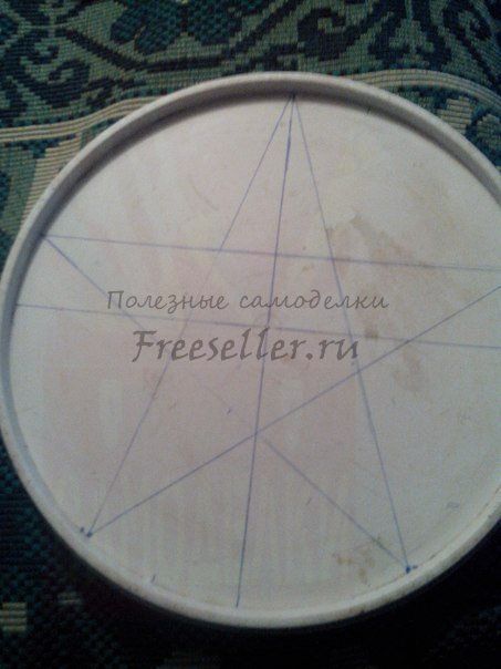 Далее берем тот материал с которого будем вырезать форму звезды (у нас крышка майонезная).