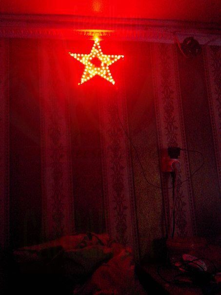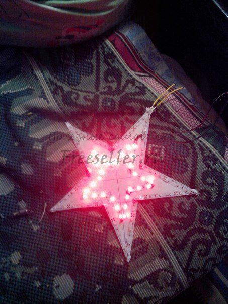 Потом берем нашу ленту клеем по граням звезды и подключаем к питанию!