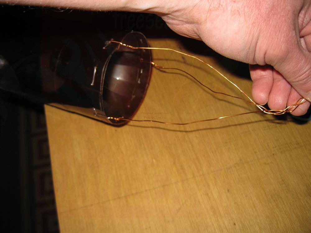 После этого прикручиваем проволочки для подвешивания кормушки.