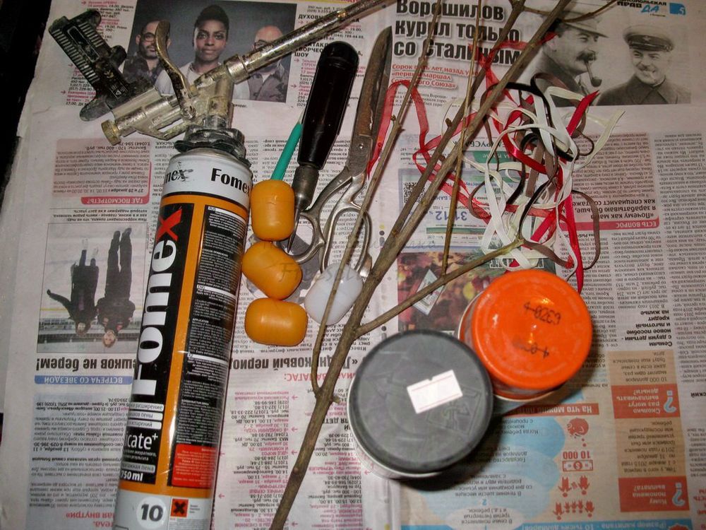 5) хаотично обрабатываем краской 2-х цветов и саму ветку;