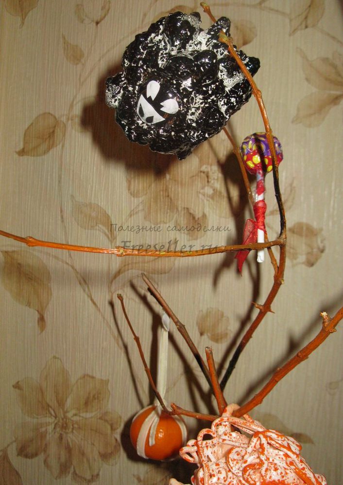 Если традиционная новогодняя елка и ее атрибутика под вопросом, а руки «чешутся» и хочется экспериментов, то можно попробовать создать вот такой сюр из причудливых материалов и предметов. Вместо елки - веточка дерева, вместо игрушек - забавные овечки (символ 2015 года), конфеты и фрукты.