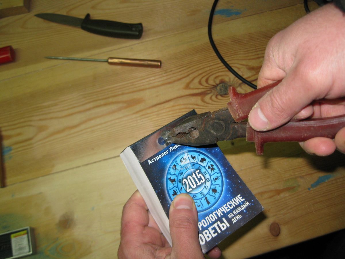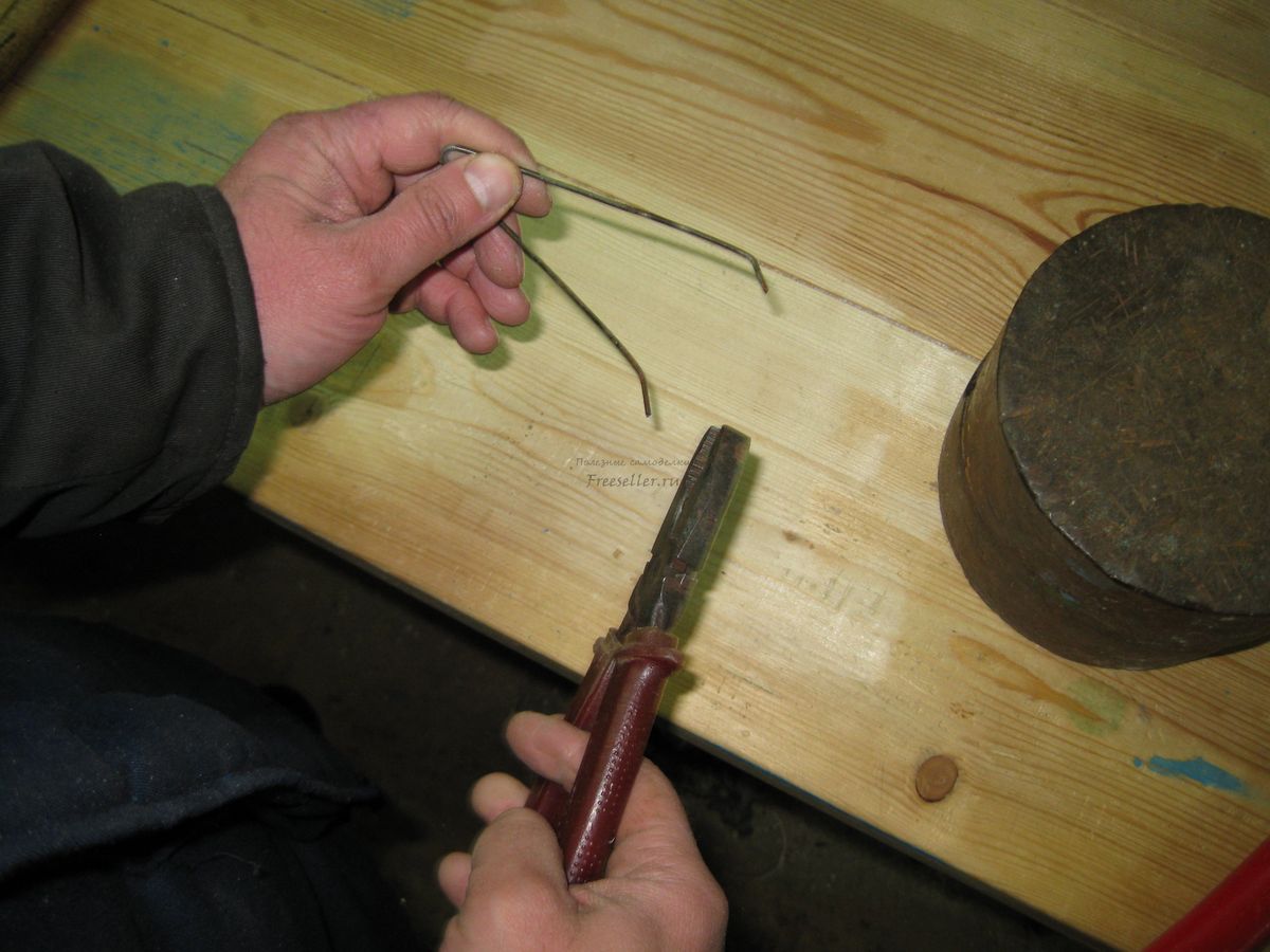 Теперь нужно сделать проволочную державку, на которую мы будем вешать наш календарь. Для этого, если необходимо, выпрямляем проволоку молотком и сгибаем ее пассатижами.
