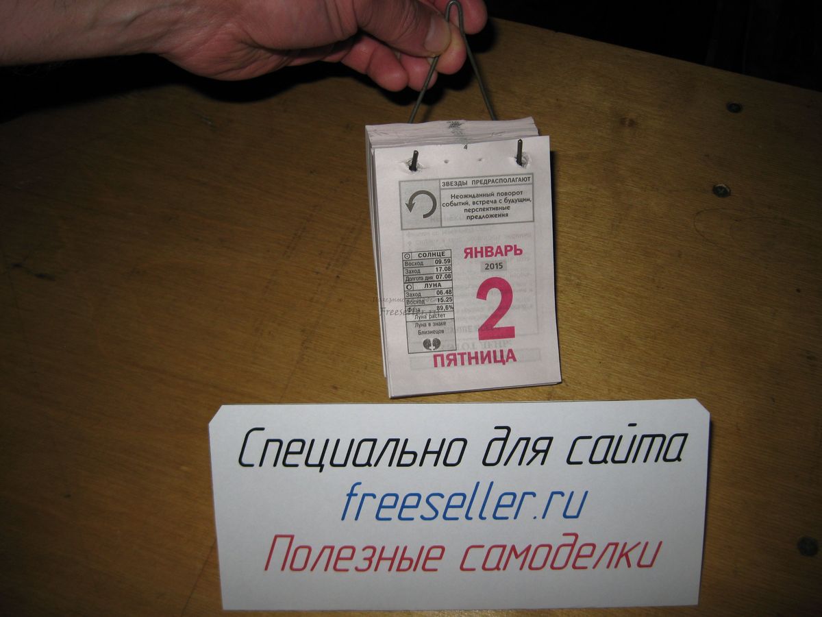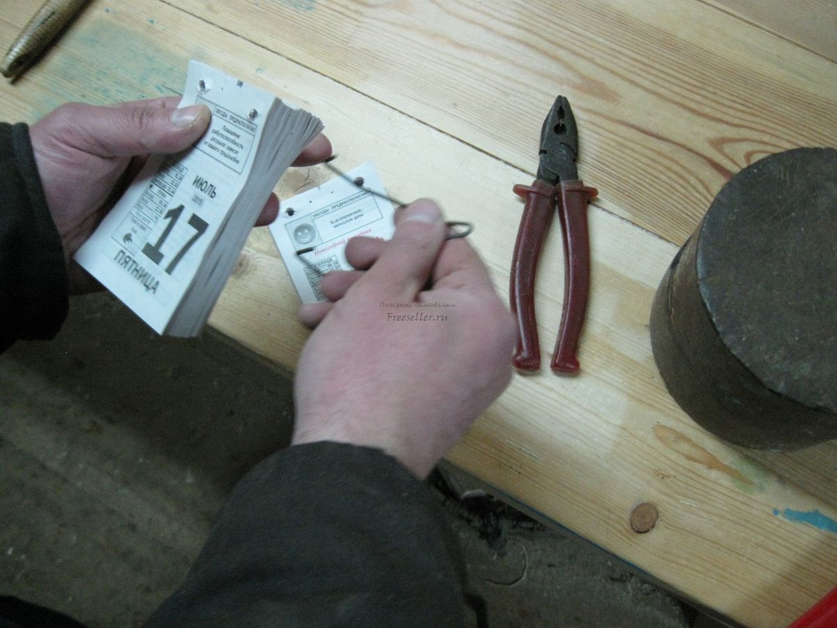 Конечно единственный недостаток здесь это то, что каждый год при покупке нового отрывного календаря вам нужно будет заново проделывать операции по его доработке (сверление отверстий и обрезание верхнего края). Но зато проволочную державку вам больше не надо будет делать, поскольку раз сделанная она прослужит вам долгие годы.