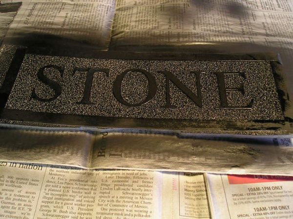 На выбор мастера можно удалять или не удалять буквы, можно окрасить буквы на пенопласте после удаления бумажных шаблонов краской под металл, либо оставить надпись без изменений.