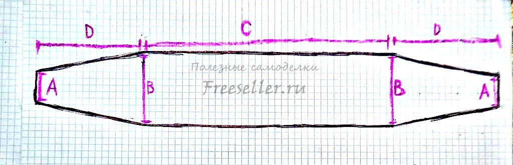 По нижеприведенному чертежу делаем выкройку, учитывая что примерные размеры на чертеже следующие: