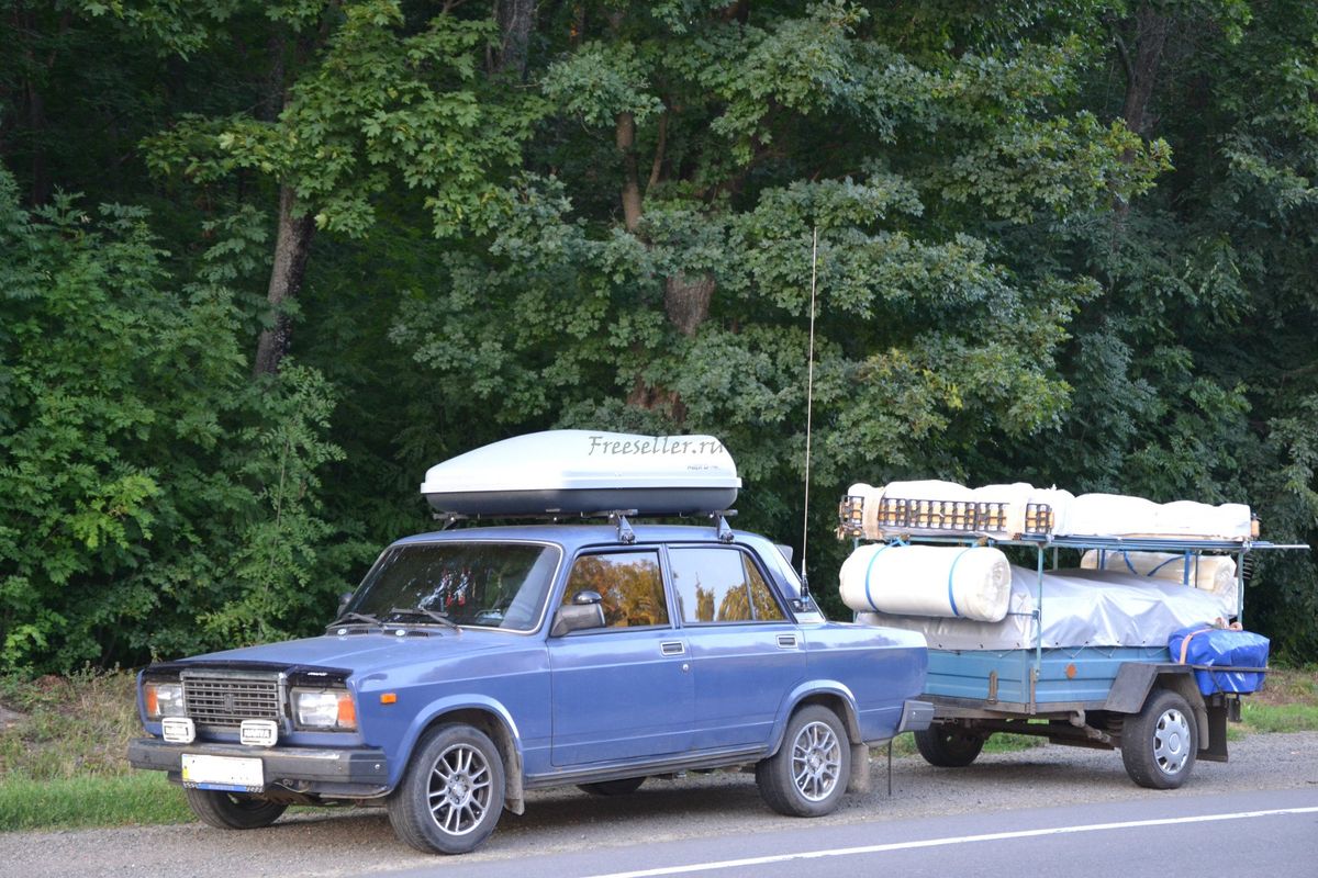 В прицепе дополнительно установлен аккумулятор на 100Ач, что позволяет обеспечить питанием компрессорный холодильник, освещения лагеря из 4-6 палаток, зарядок телефонов, фотоаппарата и многое другое. Также на прицепе возле бортов приварены крепления для 2-х ящиков для инструментов, в которых перевозятся некоторые инструменты и всякие мелочи, связные с нашими путешествиями. Багажник успешно эксплуатируется уже 3-ри сезона подряд и пробег более 5000км, полет нормальный. Всем удачных и приятных путешествий.