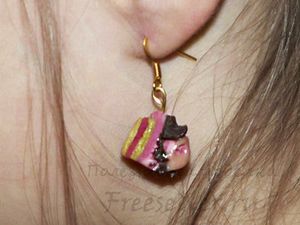 Вставляем в серьги штифты, делаем это очень осторожно, чтобы штифты не вышли сзади, и не испортилась форма украшения, ведь полимерная глина очень мягкий материал.
