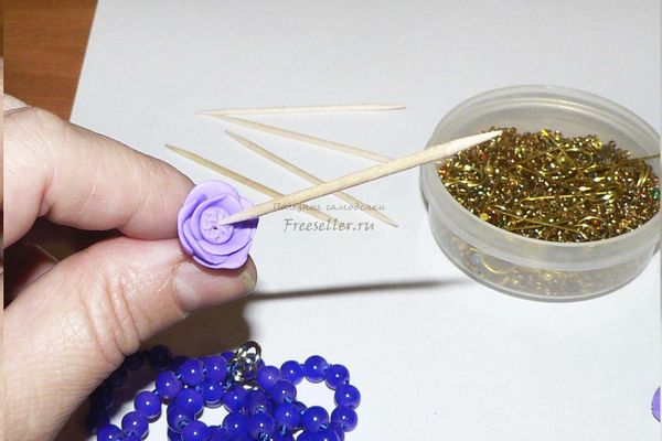 Зубочисткой делаем маленькие дырочки на серединке цветка.