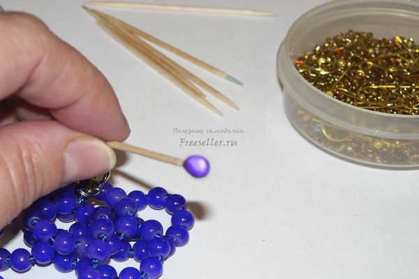 Берем один шарик, формируем из него капельку и надеваем на зубочистку, чтобы было удобнее работать.