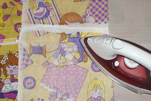 Начинаем с того, что хорошенько утюжим ткань, складываем каждый отрез вдвое - это нужно для того, чтобы наложить выкройку сразу на обе стороны, так как игрушка у нас будет объемная набитая изнутри синтепоном.
