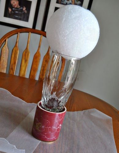 2.Подготовьте "держатель" для привидения. Возьмите воздушный шарик, пенопластовый шарик, чашку. Что-либо, чтобы создать привидение нужной формы и размера.