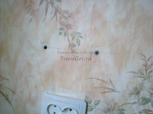 3. На таком же расстоянии друг от друга по разметке вставляем в стену над розеткой дюбели.