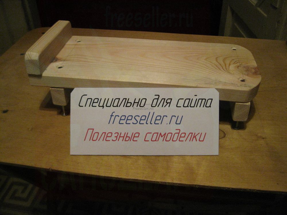 Во-вторых, мне пришлось сделать внизу подставки две планки - основания ножек. Но сразу отмечу, что эти планки я сделал только потому, что у меня на момент изготовления данной подставки, просто не оказалось под рукой достаточно длинных шурупов с прессшайбой.