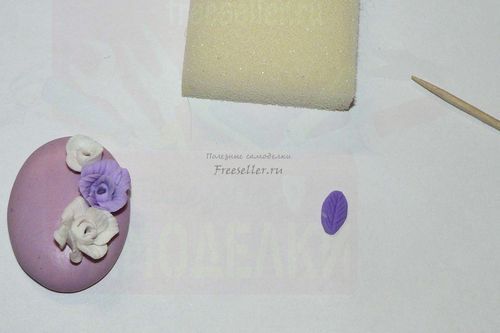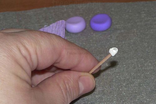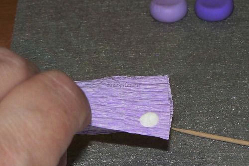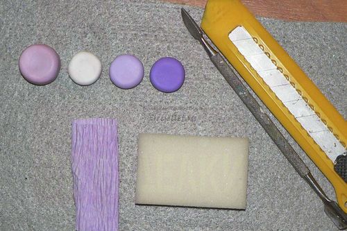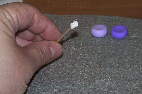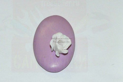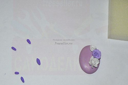 Точно также, как делали белую розу, формируем розочку поменьше из светло-фиолетовой пластики.
