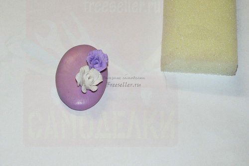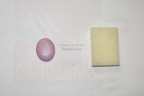 Берем розовую полимерную глину и придаем ей форму овального кабошона. Тщательно полируем чистыми влажными пальцами, делаем его гладким.