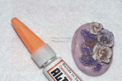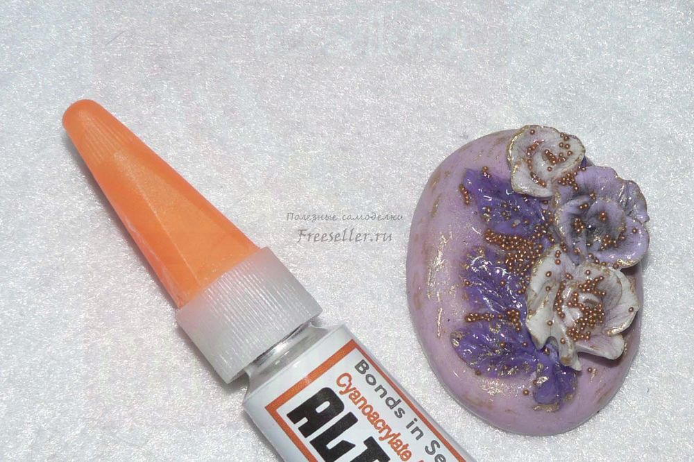 Начинаем работу с того, что приклеиваем кабошон на суперклей к кусочку флиса или фетра. Вырезаем кабошон с тканью так, чтобы оставался свободный край ткани шириной в сантиметр или чуть меньше.