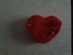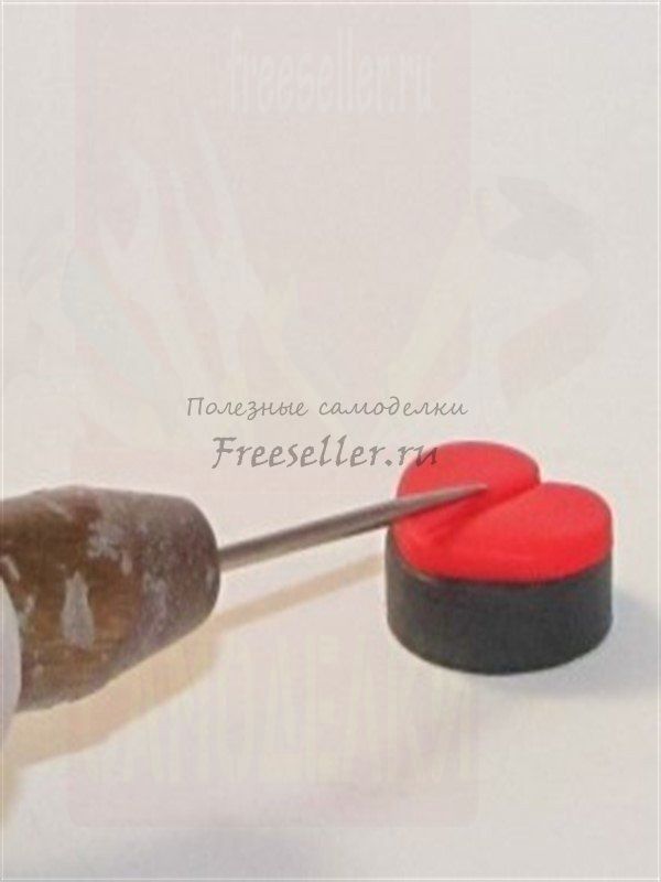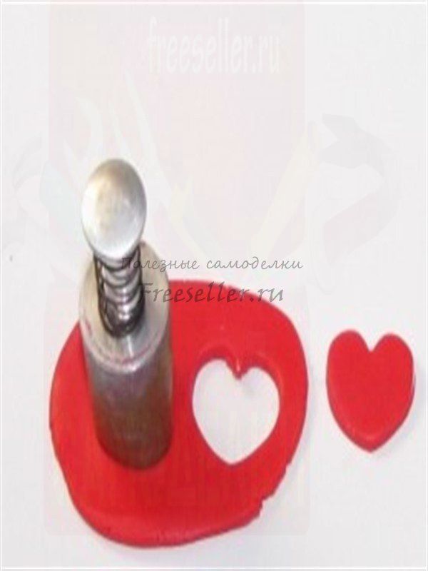 2. Используя формочки, вырежьте сердце из куска красной глины и круг из куска чёрной глины.