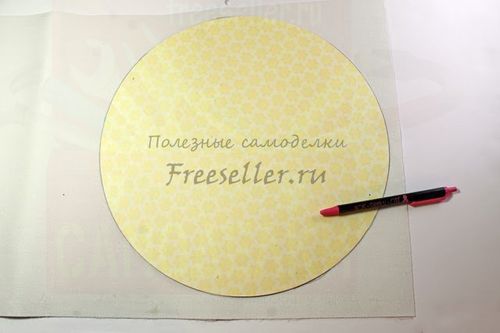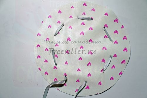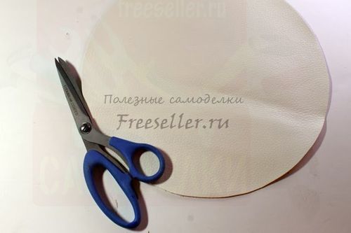 1. Вырежьте круг из кожи, используя шаблон из бумаги. Размер круга зависит от размера вашей будущей сумки.