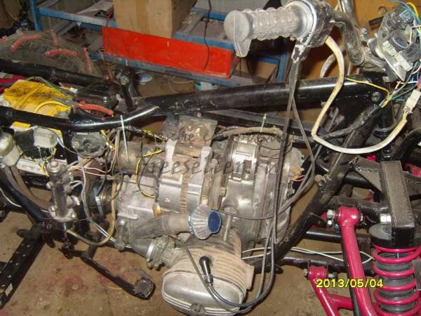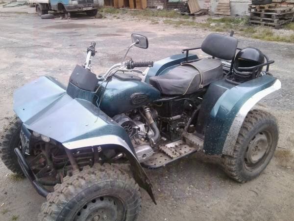 Мотоцикл "УРАЛ" по проходимости перестал устраивать и было решено переделать его в квадроцикл! Независимая подвеска в круг, принудительное охлаждение, автогенератор, стартер, дисковые тормоза, самодельный-укороченный нивский передний редуктор! Сделал понижайку. Аппарат идеально подходит для поездок за грибами и ягодами по лесу, т.к. можно проехать меж деревьями. Вес 320кг, ход подвески 300мм, ширина 1250мм. Амортизаторы нива задние, пружины ока, стартер 2110, охлаждение два вентилятора печки 2109 соединенные с датчиками температуры, главный тормозной цилиндр от 2101, кулаки 2109, рычаги сделал из реактивных тяг 2101, бюджет 20 тыс. рублей.