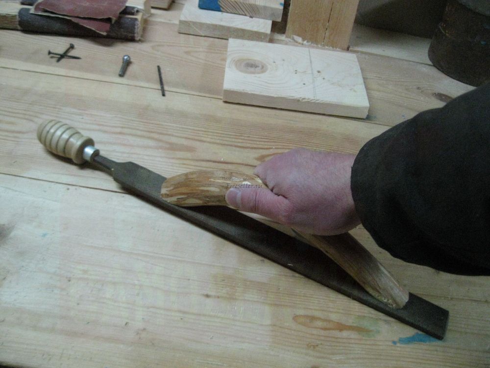 Для этого необходимо положить напильник на верстак, поставить на него заготовку будущей ручки двумя концами и поводить ей по напильнику взад и вперед несколько десятков раз, для выравнивания концов будущей ручки.
