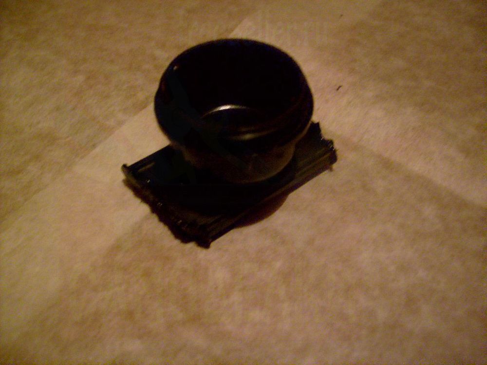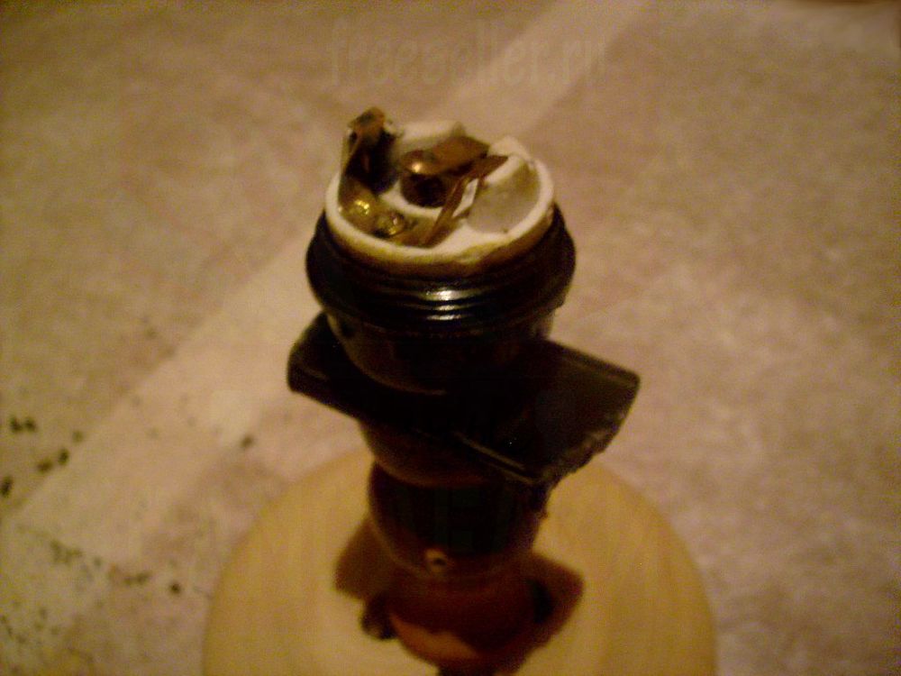 1. Выплавляем из корпуса старого светильника фрагмент патрона со втулкой.