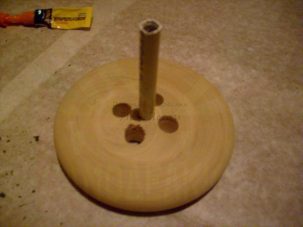 Склеиваем между собой деревянные детали, насадив стойку на стержень.