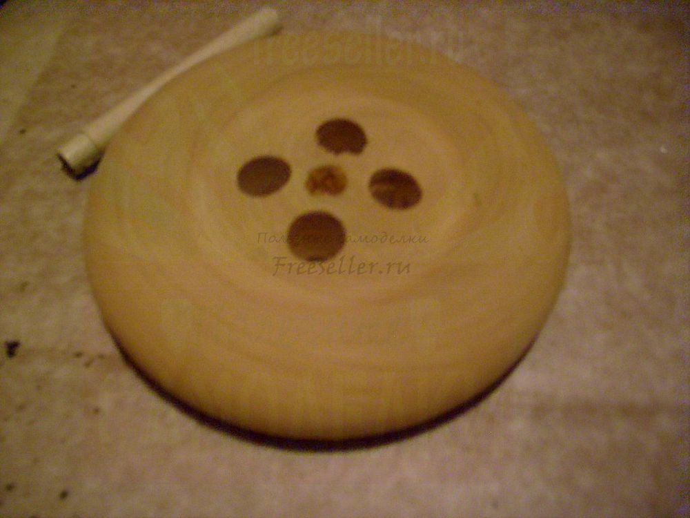 По размеру его нижней части высверливаем в пуговице отверстие.