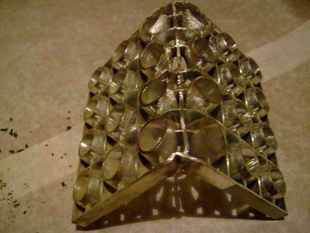 Большую из них, прямоугольную панель держим над огнём (можно над горелкой кухонной плиты) пока не подплавится пластмасса. Сгибаем панель под прямым углом.