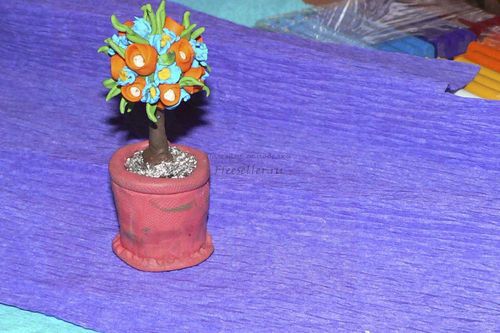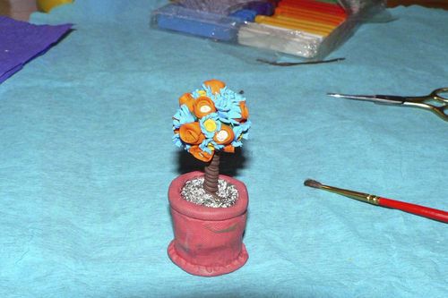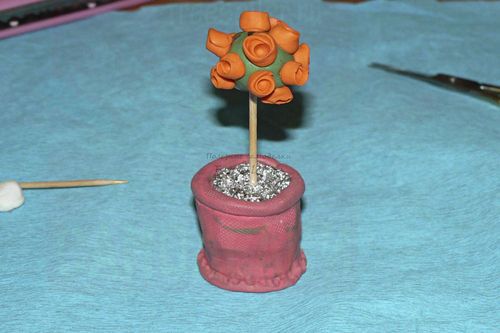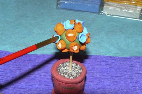 Ставим топиарий на обжиг на 30-40 минут, остужаем и покрываем лаком.