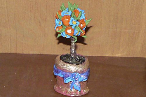 Еще совсем немного, и в свои права вступит весна! С первыми мартовскими днями в нашу жизнь постучится не только весеннее солнце, но и один из самых ожидаемых и приятных праздников – Восьмое Марта! В этот день принято дарить подарки не только близким и родным женщинам, но и просто знакомым, поэтому расходы на сувениры серьезно « потряхивают» бюджет. Предлагаем вам экономный вариант сувенира, расход материала на создание которого ничтожно мал, а результат работы порадует одариваемую вами особу. Этот сувенир – мини-топиарий из полимерной глины.