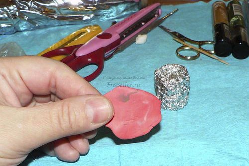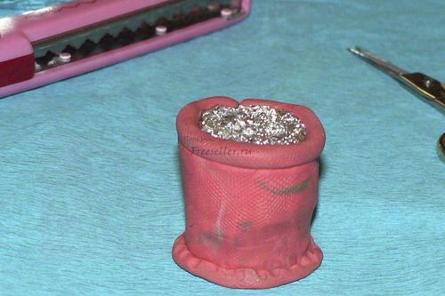Начинаем работу с того, что придаем кусочку фольги форму горшочка. Делаем его очень плотным.