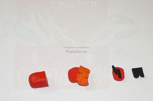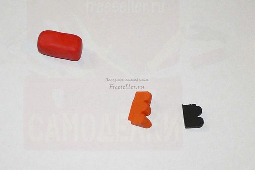 Начнем с того, что смешаем красную и оранжевую пластики (оранжевой возьмем в половину меньше).