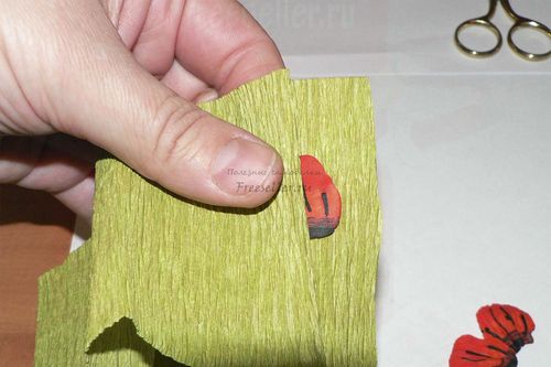 Каждый лепесток заворачиваем в гофрированную бумагу и аккуратно сжимаем, от этого на поверхности лепестка появляется реалистичный рельеф. Если есть молд, то можно использовать его.
