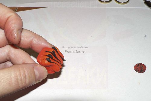 Соединяем края и прилепляем к куску еще и красно-коричневый элемент.