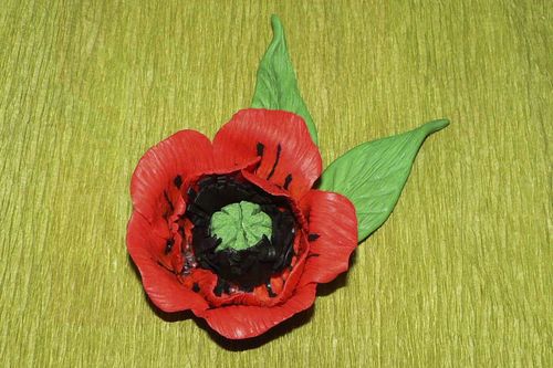 Предлагаем вам порадовать себя яркими красками, а заодно и создать из полимерной глины красивый реалистичный цветок мака, который можно использовать как магнитик на холодильник, зажим для штор или вставку в украшение.